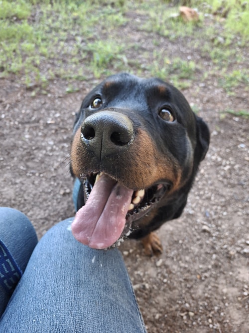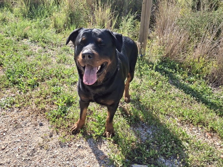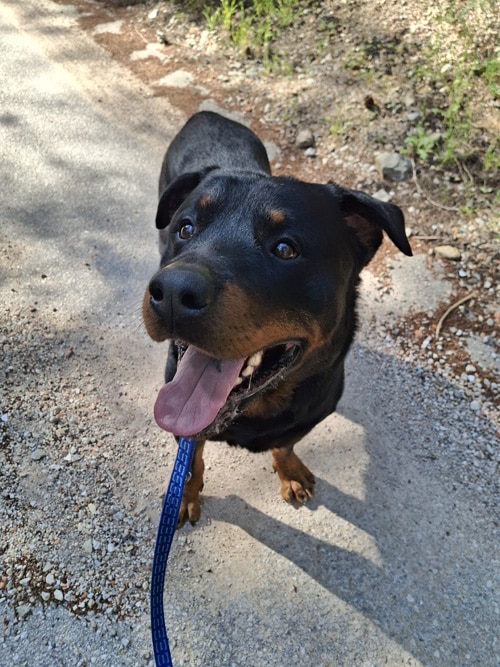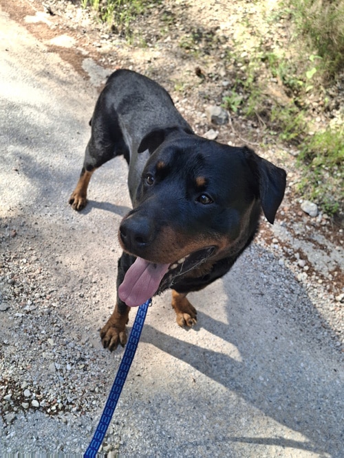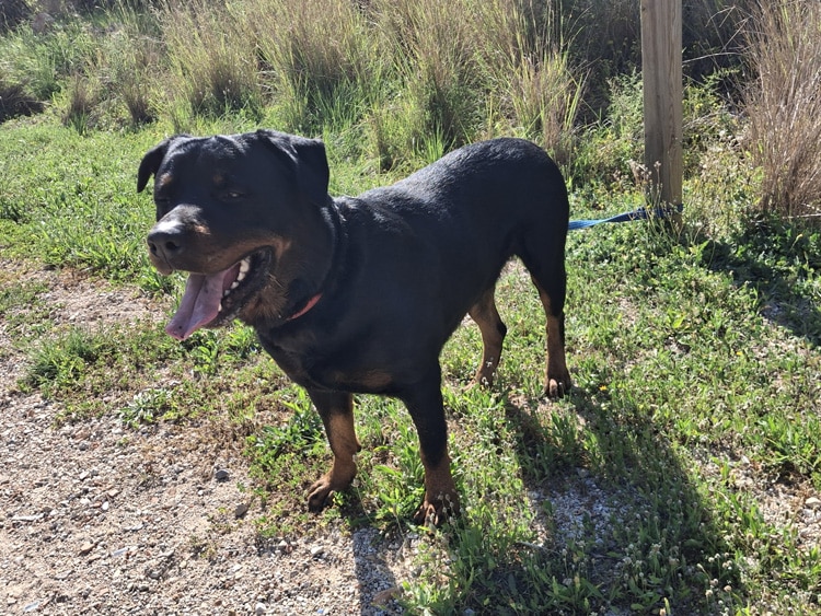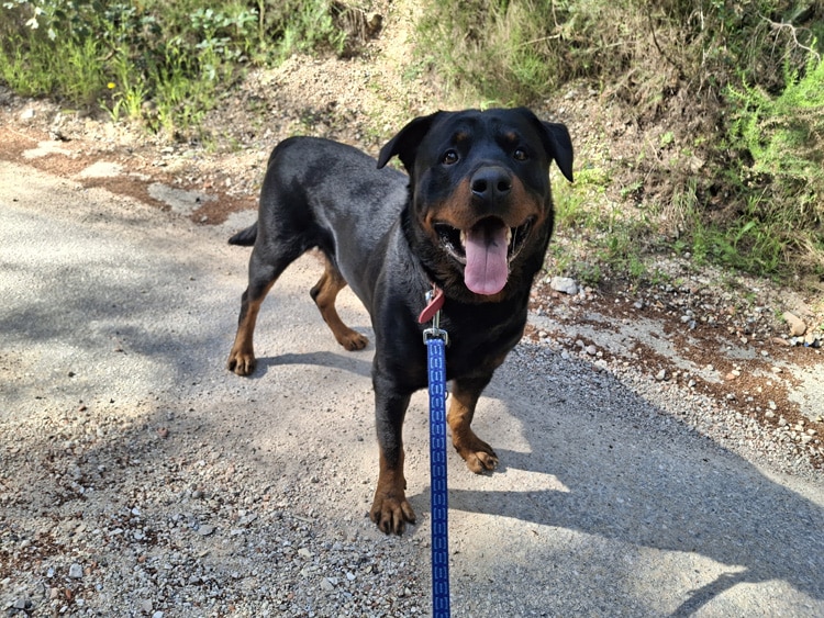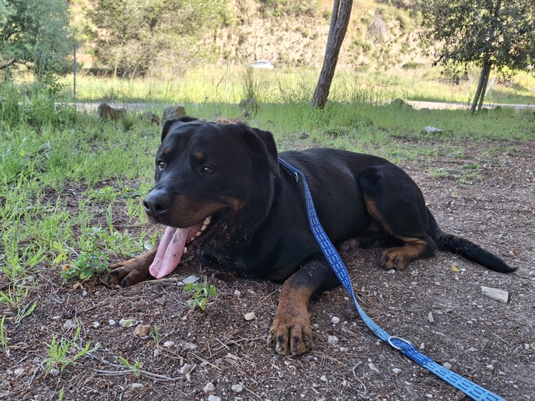 Aguiles es un precioso Rottweiler de aproximadamente 4 años, un perro noble, equilibrado y lleno de cariño. Es un macho maravilloso que disfruta mucho de la compañía de las personas y siempre busca estar cerca de quienes le rodean.