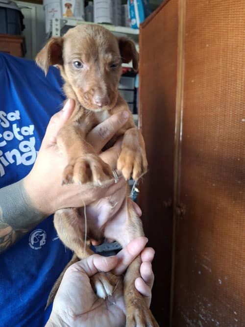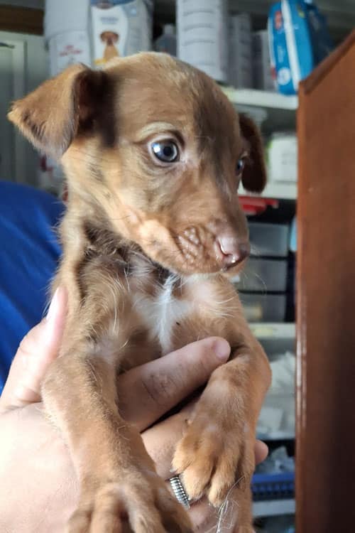 Este precioso cachorro de Podenco fue abandonado junto a su hermanito cerca del refugio. Con tan solo mes y medio de vida, Cederic ya muestra un carácter encantador: es cariñoso, juguetón y lleno de ternura.