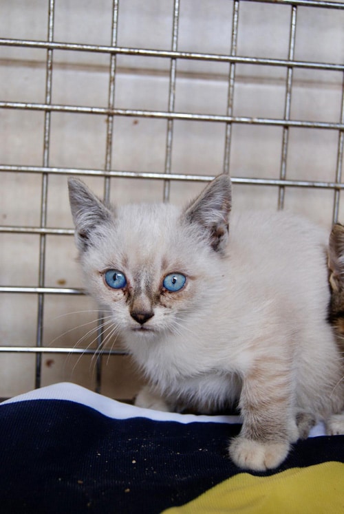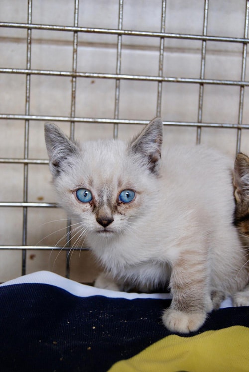 Leni es una preciosa gatita Siam de dos meses, nacida en la calle junto a sus tres hermanitos. Gracias a personas solidarias que se fijaron en ellos, pudieron ser rescatados y recibir los primeros cuidados que tanto necesitaban.