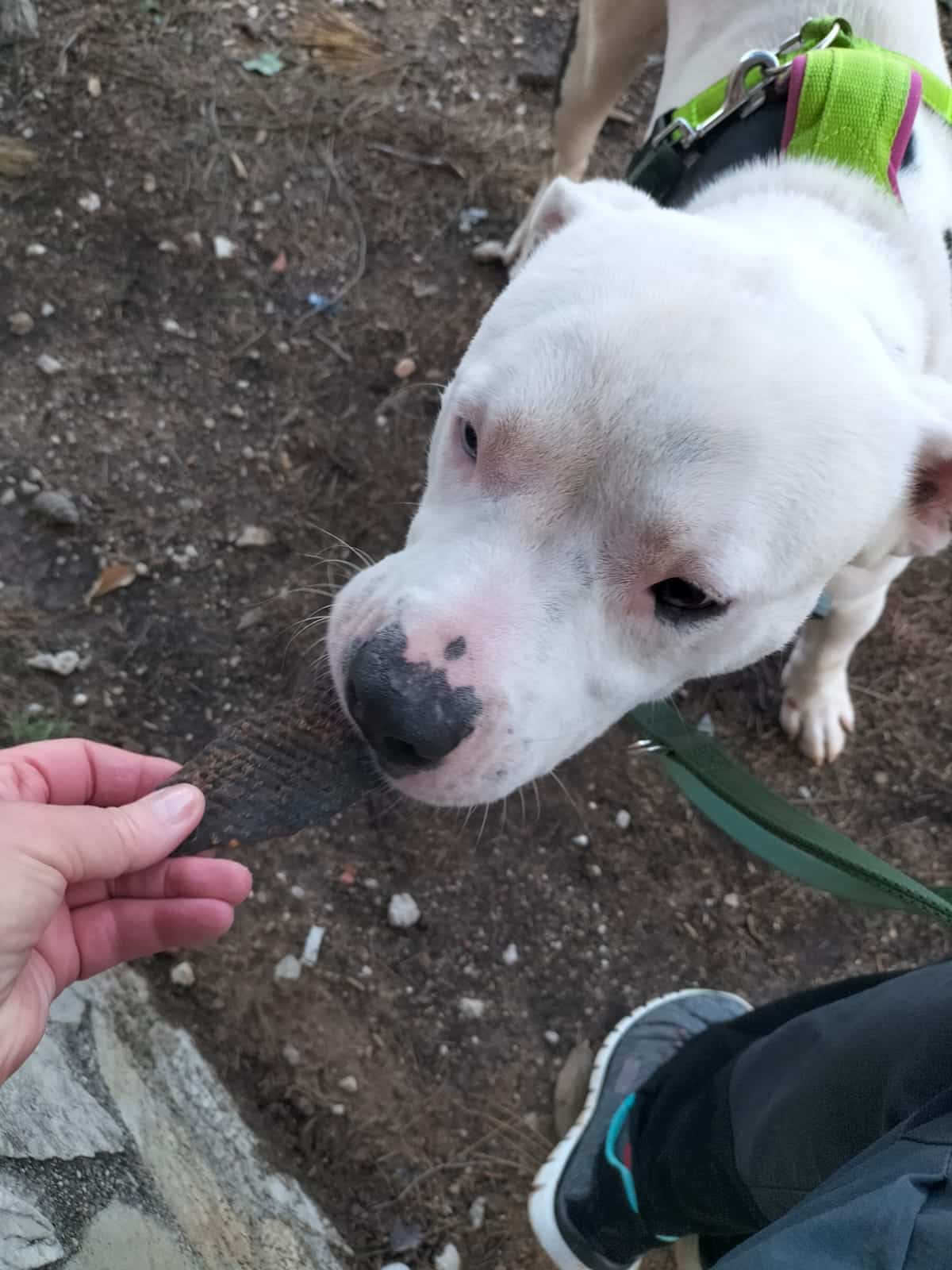 Camina bien con correa y disfruta claramente del contacto humano, las caricias y la compañía. Es un perro atento, tranquilo y con una gran capacidad de conexión con las personas.