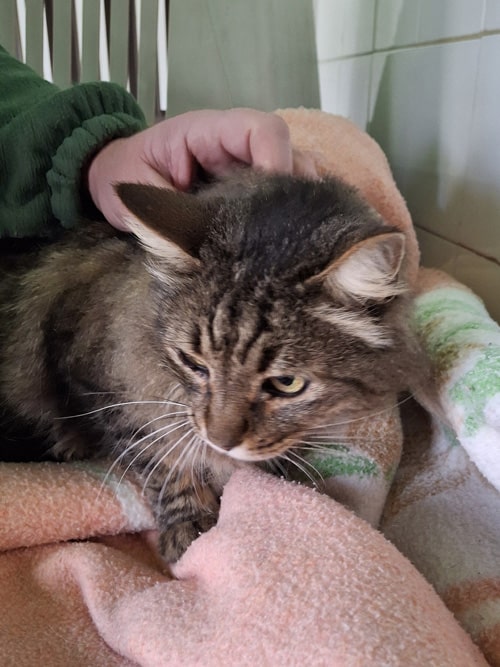 Fue encontrado en la calle y ahora espera su segunda oportunidad. Como es normal cuando un gato llega al refugio, Pepinillo está un poco desorientado y algo asustado. Todo es nuevo para él. Sin embargo, detrás de esa timidez se esconde un compañero noble y sensible que solo necesita tiempo, paciencia y cariño para volver a confiar plenamente.